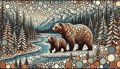Mosaic Wilderness: A Grizzly Bear and Cub amidst Canada’s Seasons