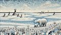 Arctic Wonders: A Cubist Polar Bear Landscape Encapsulated in Dots