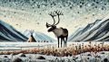 Arctic Serenity: Caribou Amidst Cubist-Inspired Landscape Dots