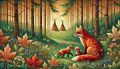 Enchanting Canadian Wilderness: A Cubist Red Fox Family Portrait