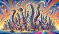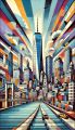 Vibrant Cubist Interpretation of New York Skyline with One World Trade
