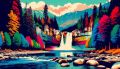 Montmorency Falls Reimagined Through Cubism and Decopunk Artistry