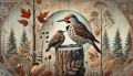 Spring Awakening: Northern Flicker and Chicks in a Surreal Landscape