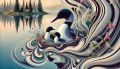 Enchanting Cubist Interpretation of a Common Loon Family Amidst Surreal Nature