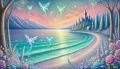 Enchanted Pastel Dreamscape of Lake Huron with Magical Creatures