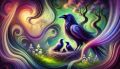 Mystical Raven Family Amongst Swirling Springtime Colors