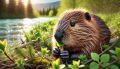 Beaver Busy at Work Amidst Lush Greenery by Athabasca River