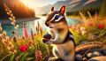 Chipmunk Family Amidst Spring Blooms in a Mystical Canadian Forest