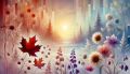 Radiant Dawn in a Stylized Canadian Floral Landscape