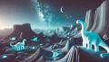 Surreal 3D Representation of Dinosaur Provincial Park Under Starlit Sky