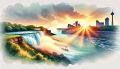 Morning Glow Over Niagara Falls Captured in Watercolor Brilliance
