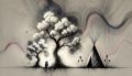 Whispers of Nature and Tradition in a Surreal Monochrome Landscape