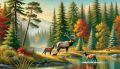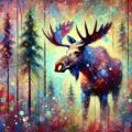 Enchanting Impressionist Moose Merges with Dreamy Canadian Forestscape