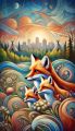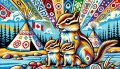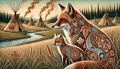 Vibrant Canadian Landscape with Stylized Foxes Amidst Teepees