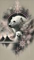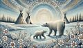 Arctic Elegance: A Mosaic Artwork of Polar Bear and Cub with Indigenous Tents