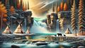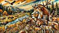 "Cubist-Baroque Fusion: Wildlife Harmony in a Canadian Sanctuary"
