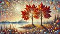 Autumn Splendor in a Cubist Dream: Maple Trees by the Lakeside