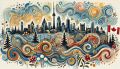 Enchanting Artistic Rendering of Canadian Cities with Vibrant Abstract Elements