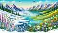 Vivid Cubist Interpretation of Waterton Lakes During Seasonal Transition
