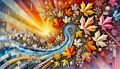 Enchanting Canadian Sunrise Amidst Fall Colors and Cubist Flora