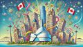 Vibrant Artistic Representation of Canada's Major Cities in a Whimsical Style