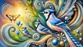 Blue Jay Family Amidst an Autumn-Inspired Canadian Dreamscape
