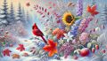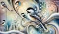 Artistic Fusion of Chickadees and Winter Whimsy in Cubist Landscape