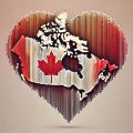 Artistic Heart-Shaped Silhouette of Canada Map with Vertical Lines