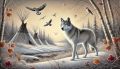 Mystical Winter in Quebec: A Wolf Amid Snow and Foliage