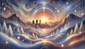 Surreal Cubist Portrait of a Bald Eagle Family Amidst Dreamy Landscapes