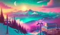 Surreal Twilight Over Whistler Mountain: A Vaporwave Vision
