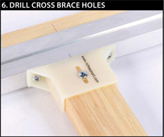 6. Cross braces are attached to the stretcher bar using the Best Cross Brace Bracket. Drill pilot hole in the stretcher bar with 3/32" drill bit, attach cross brace bracket & cross brace as shown. |