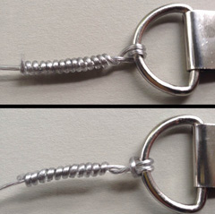 - Don't cut the wire away once it's been tied around the hanger. Wrap the excess (short end) around the longer end until it is used up. This will prevent the wire from slipping over time.