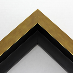 This large, L-shaped floating contemporary canvas frame in warm gold features a wide flat face.